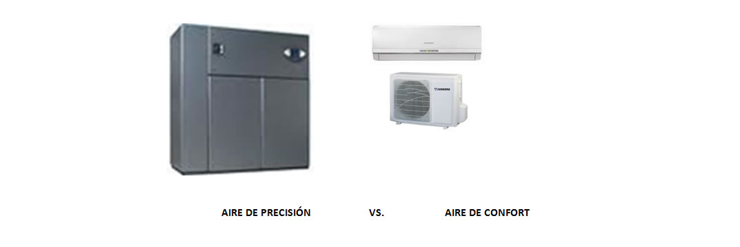 Los sistemas de aire acondicionado convencionales incluyen acondicionadores de habitación, acondicionadores centrales residenciales y sistemas de aire acondicionado para oficinas y edificios comerciales. Están diseñados principalmente para el uso intermitente requerido para mantener un ambiente confortable para la gente en establecimientos con tráfico moderado de entrar-salir. Los sistemas de aire acondicionado de precisión están diseñados principalmente para instalaciones que requieren enfriamiento constante todo el año, control de humedad preciso y mayor capacidad de enfriamiento por metro cuadrado que los sistemas convencionales. Específicamente, existen siete mayores diferencias entre los sistemas de aire acondicionado de precisión y los convencionales.