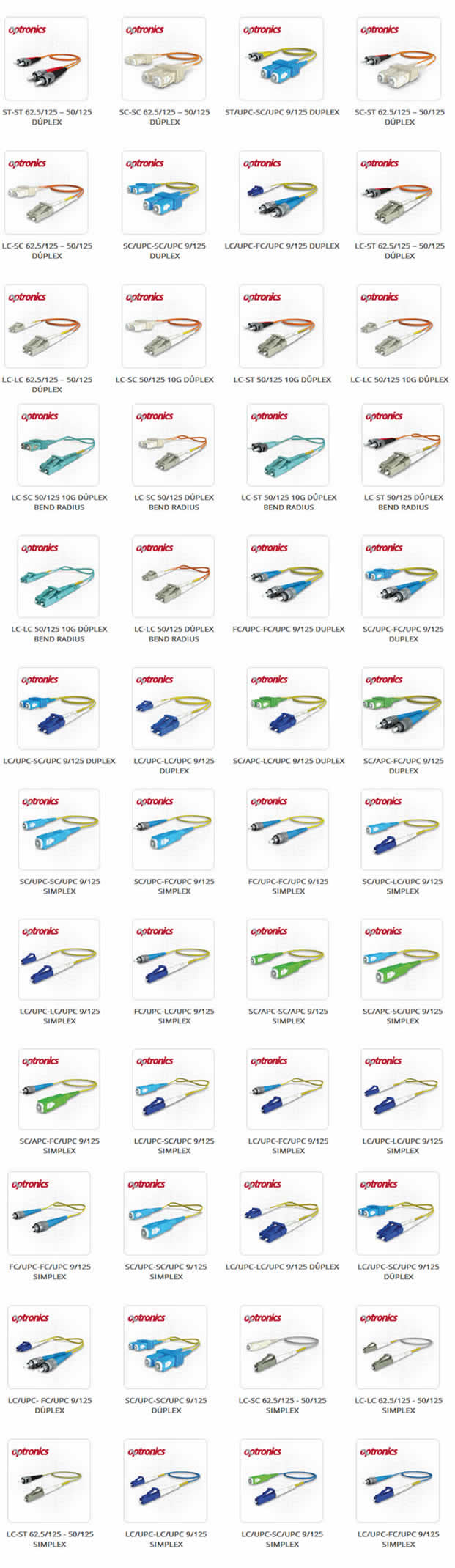 Jumpers multimodo y monomodo de todas las configuraciones y medidas (SC, ST, MTRJ, LC, Escon).