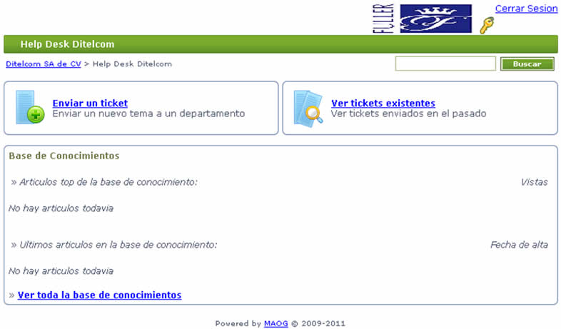 2.- Al introducir los datos de manera correcta será direccionado a nuestro help desk: